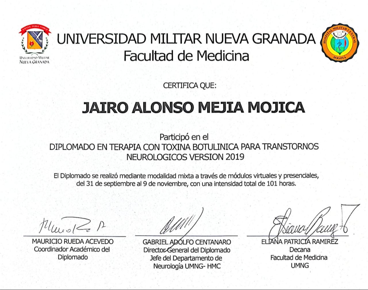 Soy médico, especialista en Neurología Clínica de la Universidad Militar Nueva Granada - Bogotá. Miembro de la Asociación Colombiana de Neurología.